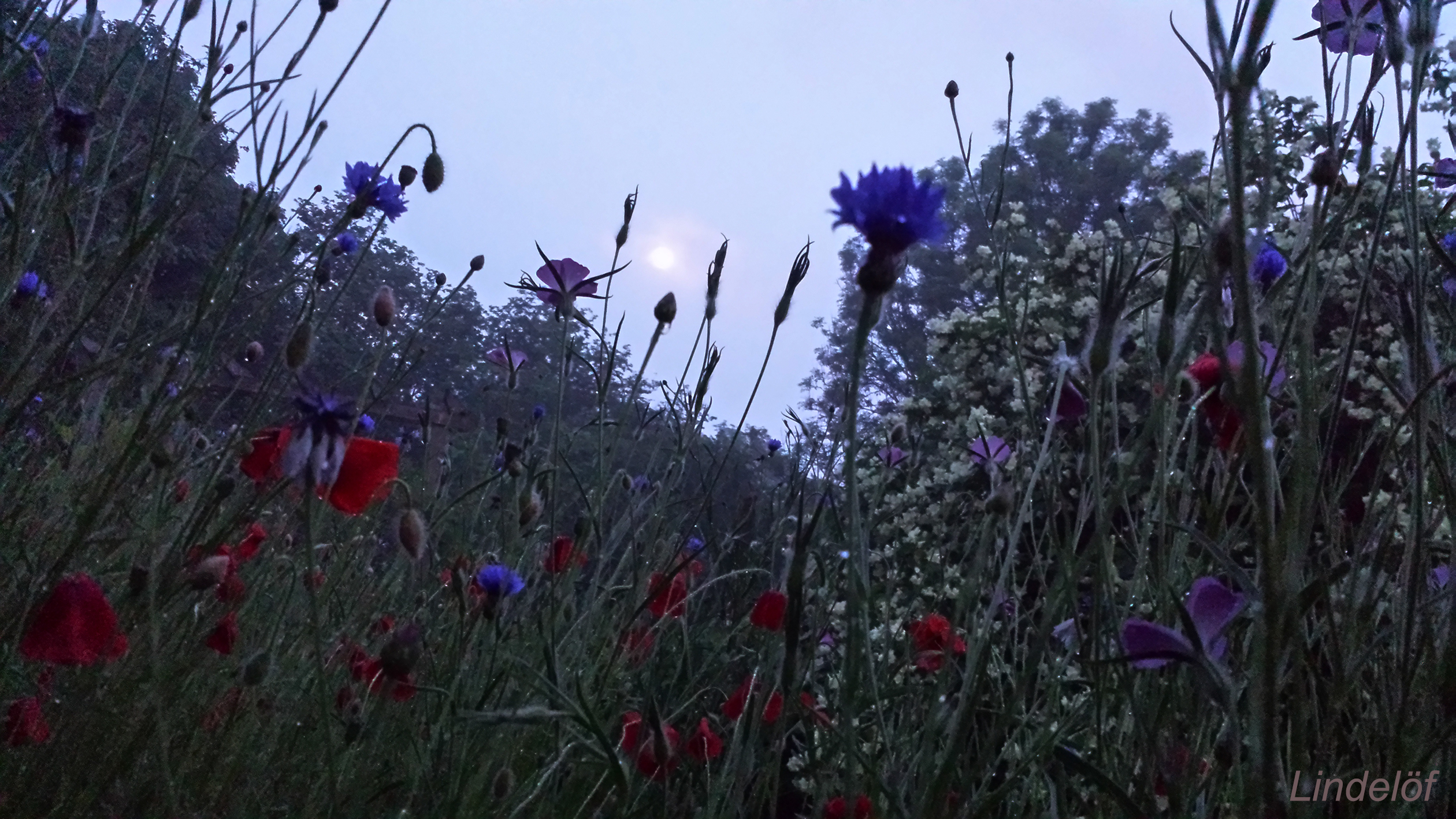 En midsommaräng. Det är bara sex månader bort. Bilden är tagen med mobilkamera en stund efter midnatt. Ljusare då än vad det nu är när man åker hem från jobbet.