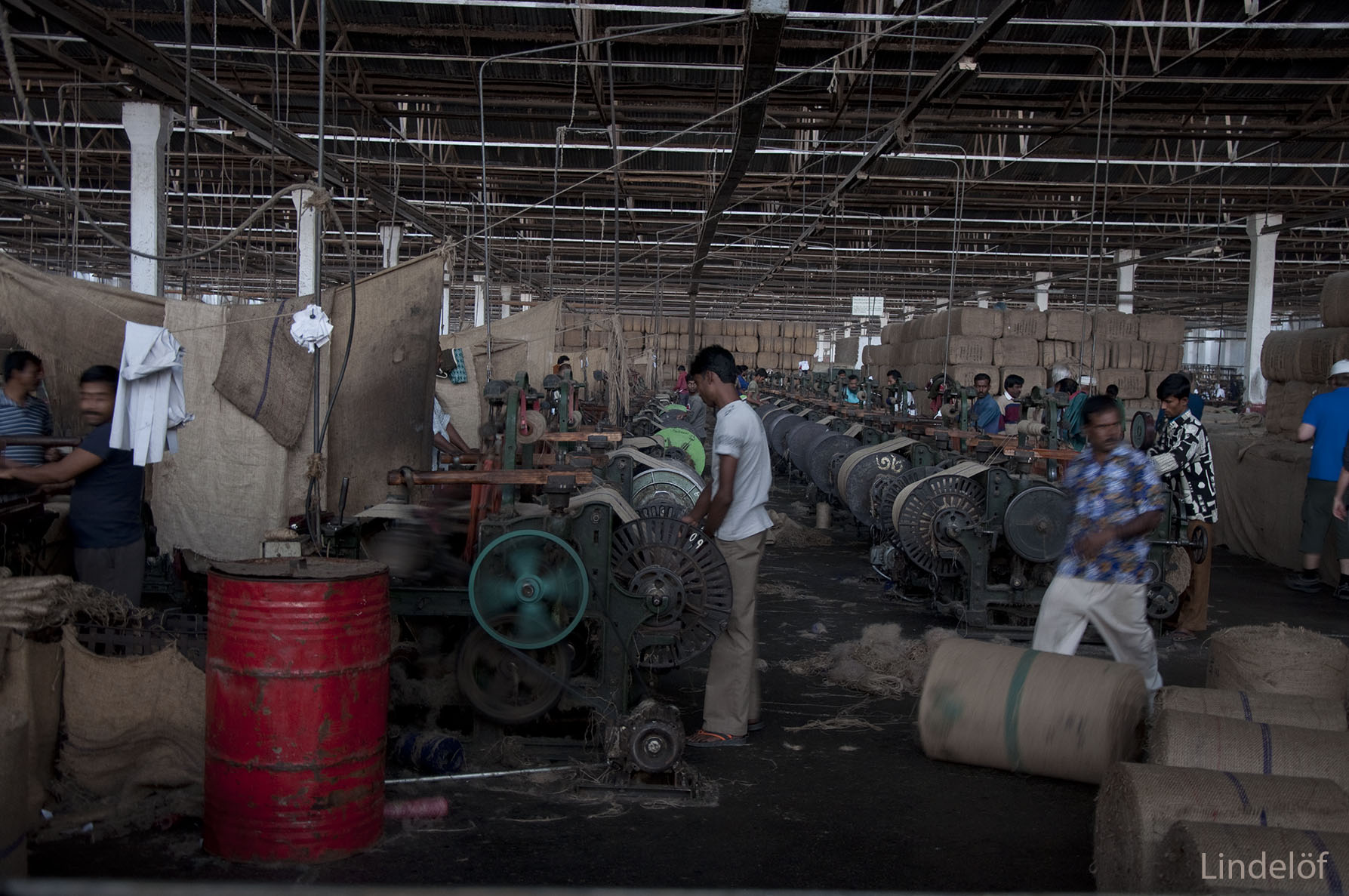 Juteindustrierna drivs vidare med de maskiner engelsmännen lämnade efter sig. Dammigt, oljedimmigt, stressigt och skitigt.